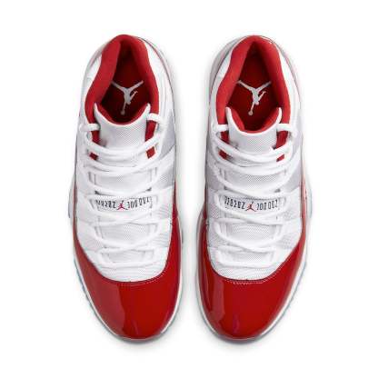 The Air Jordan 11 Retro Cherry boasts a classic design with a bold Chicago style. Combining premium materials and iconic detailing, this sleek sneaker stands out from the rest. The upper is enveloped by cherry red patent leather mudguards for a stylish touch, complemented by crisp white leather as well as matching cherry red Jumpman branding. Beneath, an icy blue outsole adds further edge to the silhouette, while a signature 23 debossing adorns the heel tab for extra flair. Further innovation comes from the Carbon fiber plate at the midsole, enhancing support and durability in every step. Perfect for bringing contemporary energy and effortless style to your sneaker rotation.