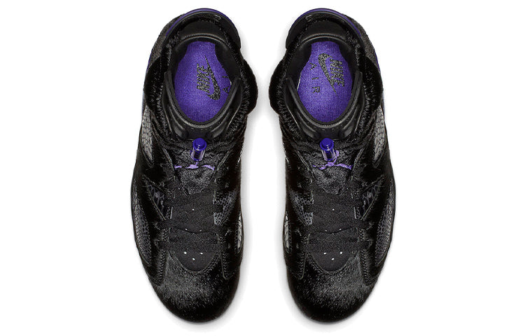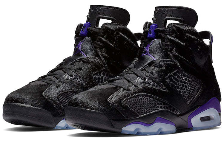 The Social Status x Air Jordan 6 Retro 'Pony Hair' is a must-have for any sneaker collection. This unique take on the classic silhouette features a glossy reptilian base with pony hair overlay at the toe, heel, collar and quarter panel. Contrasting pops of purple appear on the pull tab, midsole and lace lock, while Nike Air branding at the heel showcases an OG detail. This limited edition release is sure to turn heads, so don't miss your chance to add it to your collection today.