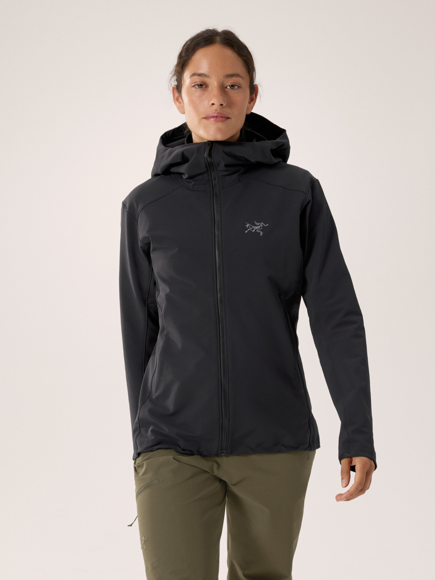 Versatility is freedom. Inspired by British Columbia's range of terrain, environments, and conditions, the Gamma Hoody is an essential softshell for anyone seeking new places and experiences. Wind resistant and water repellent, the lightweight softshell fabric stretches, breathes, and has a brushed backer for light warmth. The trim fit allows room for light layers and is patterned for freedom of movement. A helmet compatible StormHood™ delivers full coverage without impacting peripheral vision.