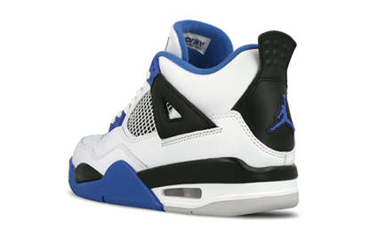 The Air Jordan 4 Retro GS 'Motorsports' is a special edition sneaker that was created to celebrate the 4th anniversary of Michael Jordan's Jordan Motorsports team. The team's colors of white, black, and Game Royal are prominently featured on the shoe, which was originally released in 2006 as a friends and family colorway. The 2017 version of the shoe does not include the Mars Blackmon accent on the heel, but is otherwise faithful to the original design. The Air Jordan 4 Retro BG 'Motorsports Alternate' was released a few months later in a black colorway. Both versions of the shoe are available now from select retailers.