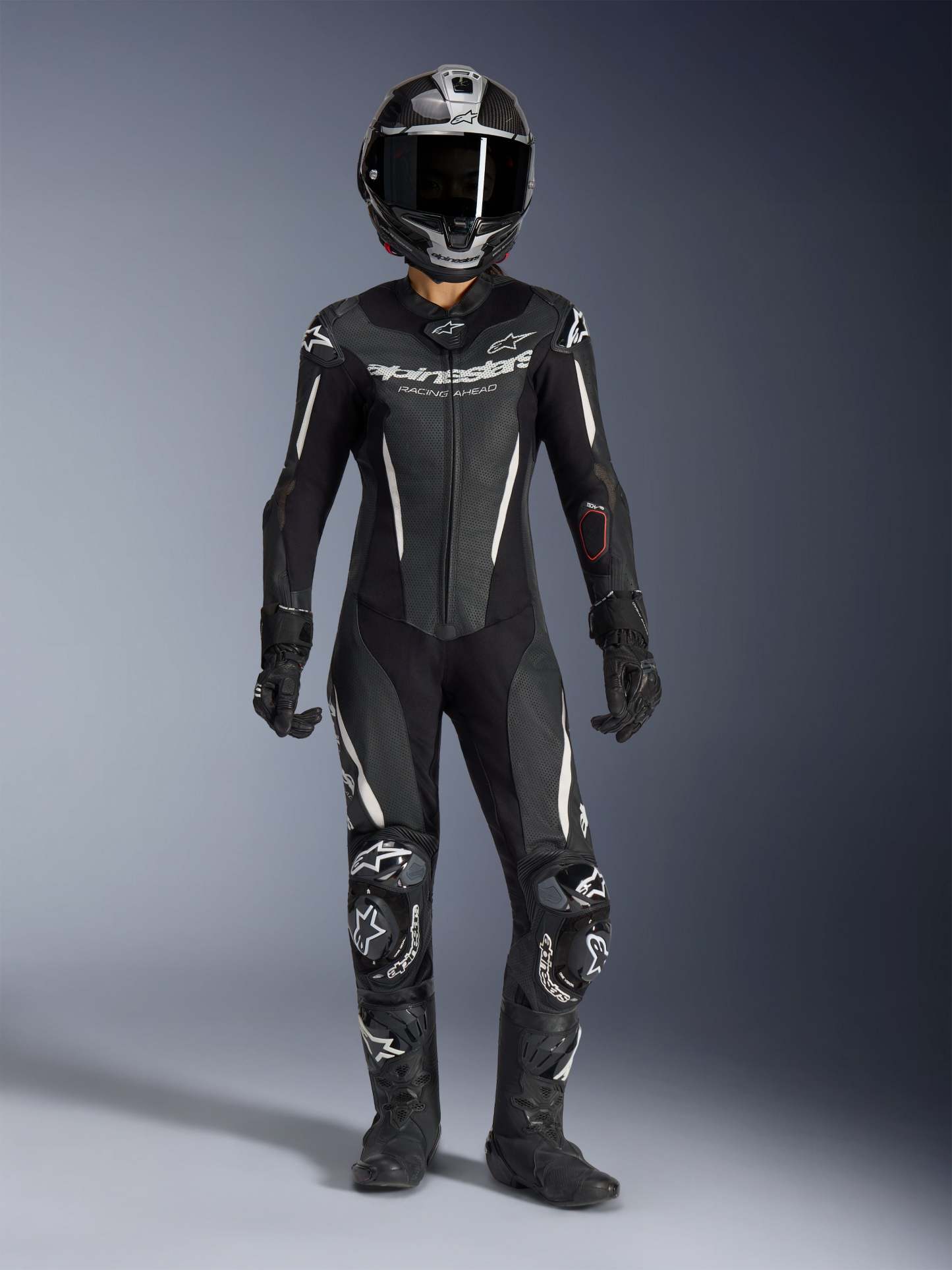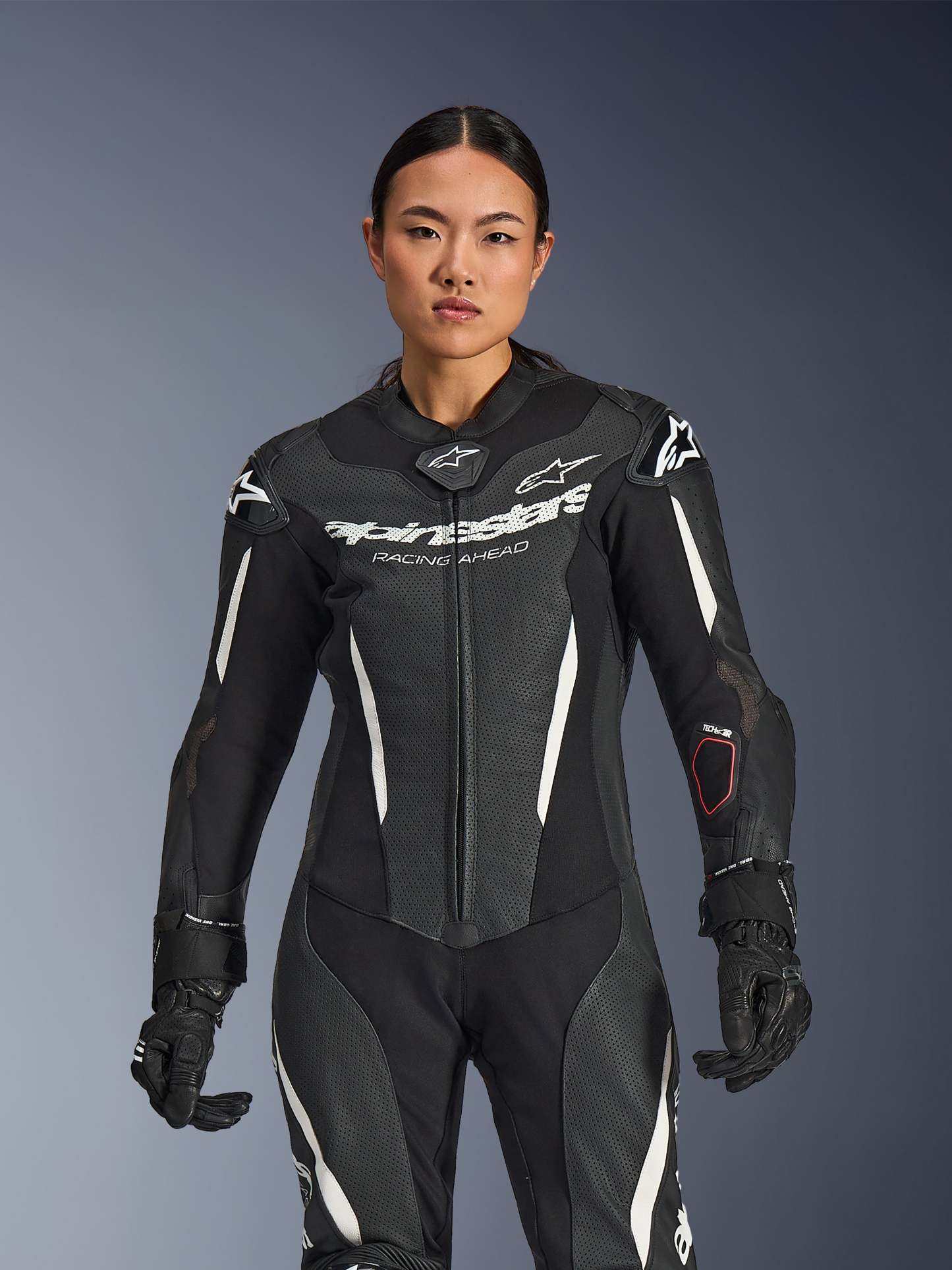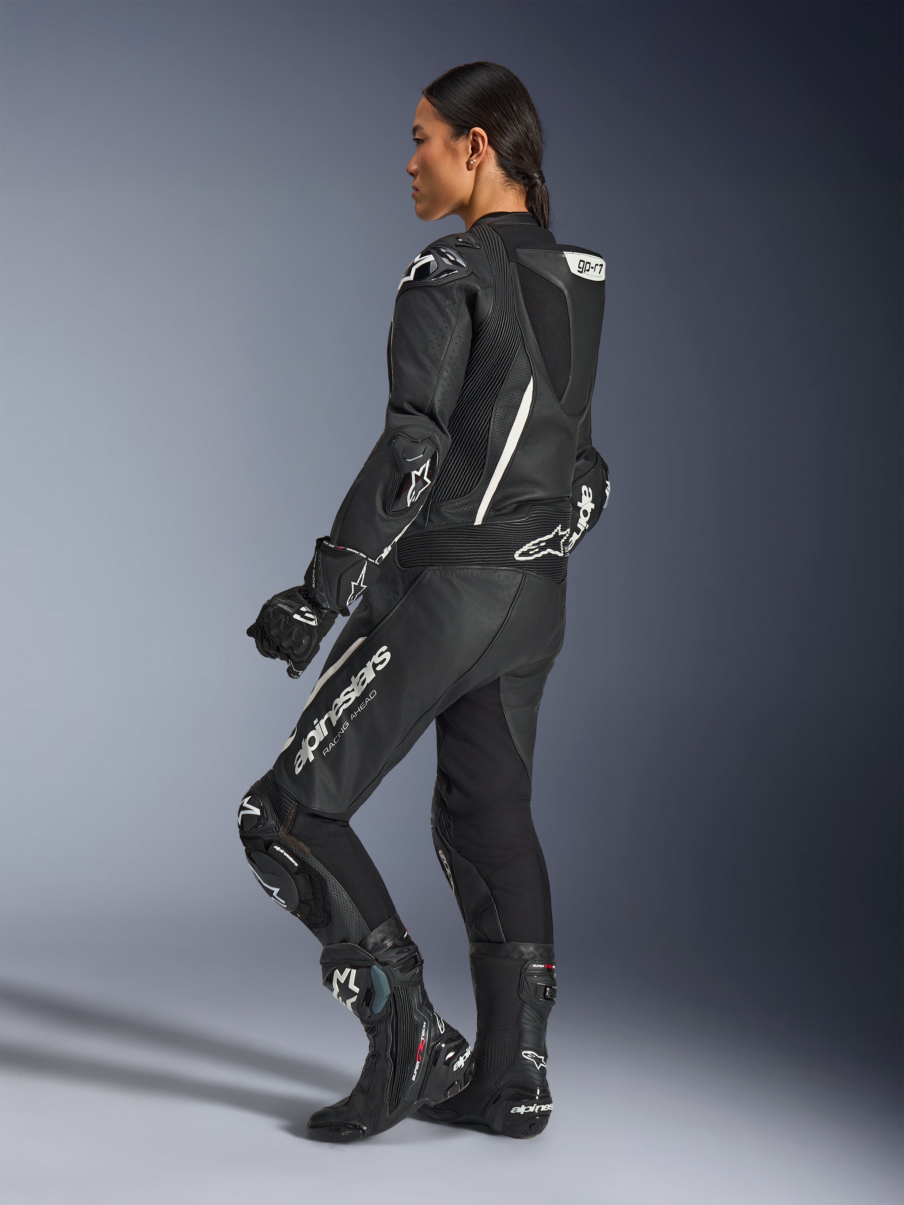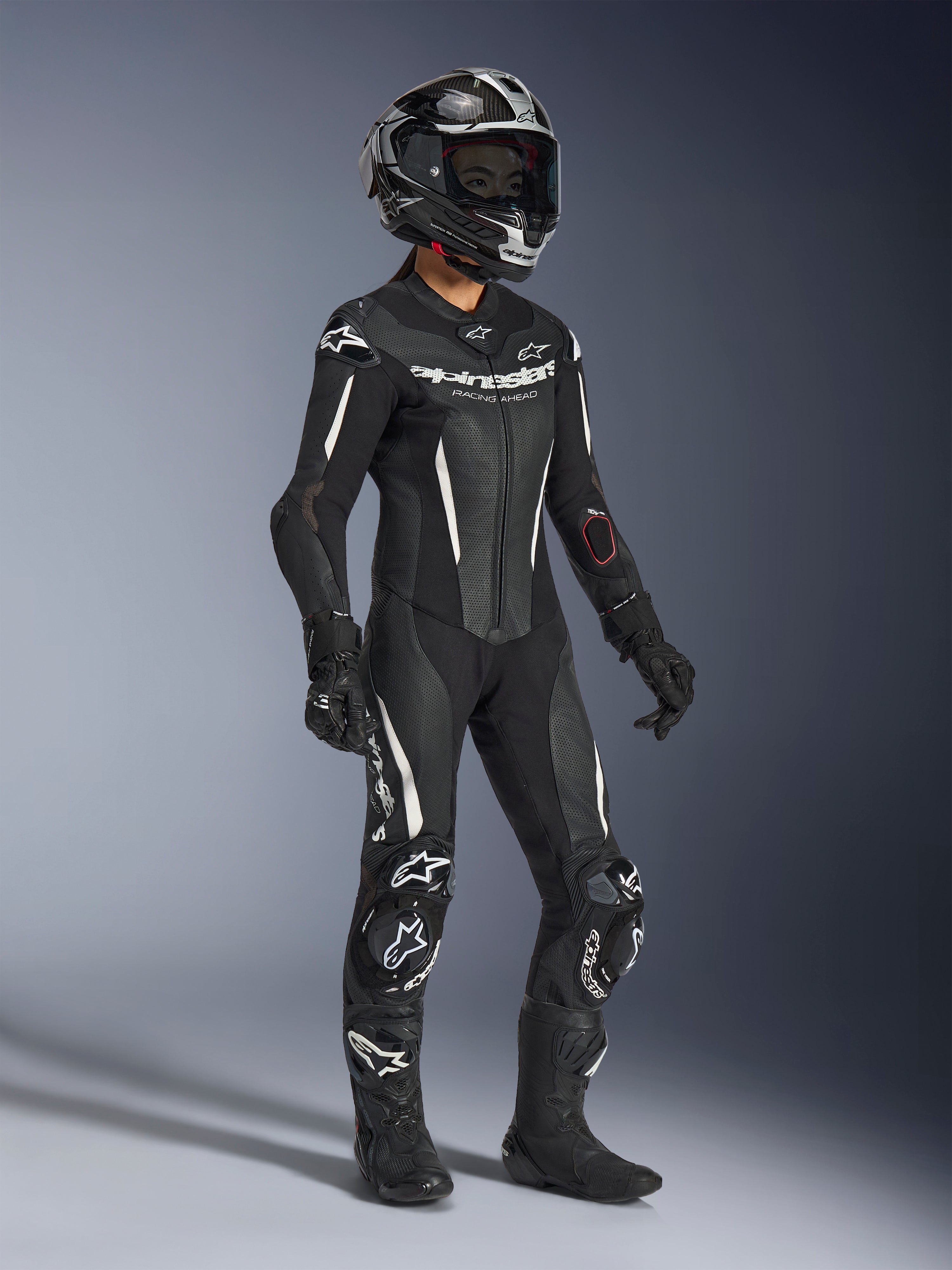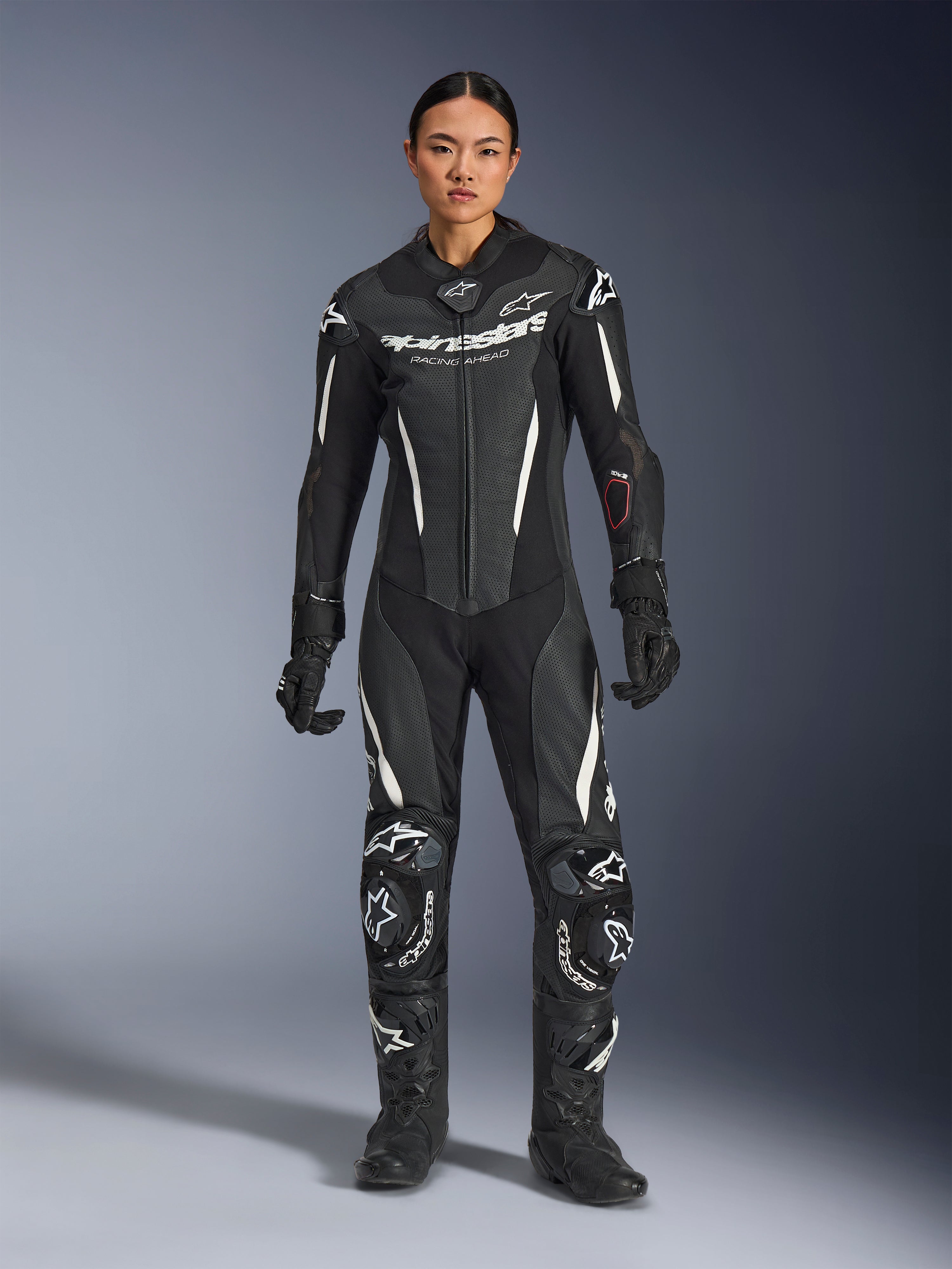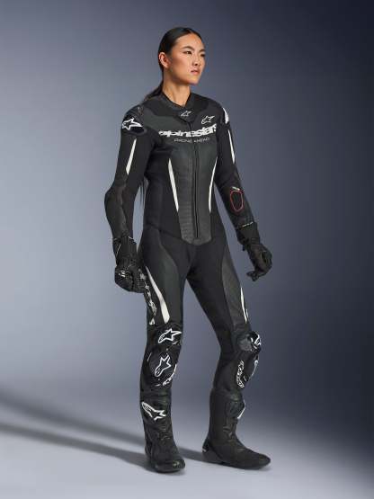 Engineered for women trackday riders, racers, and advanced road riders, the Stella GP-R7 1-Piece Leather Suit features women's optimized ergonomics and 1.3mm race-spec bovine leather construction. CE AAA certified with Nucleon PLASMA Pro armor and Tech-Air® ready design for seamless airbag integration. Delivers race-proven protection, extensive ventilation, and aerodynamic performance with integrated Supertech R10 aero hump.